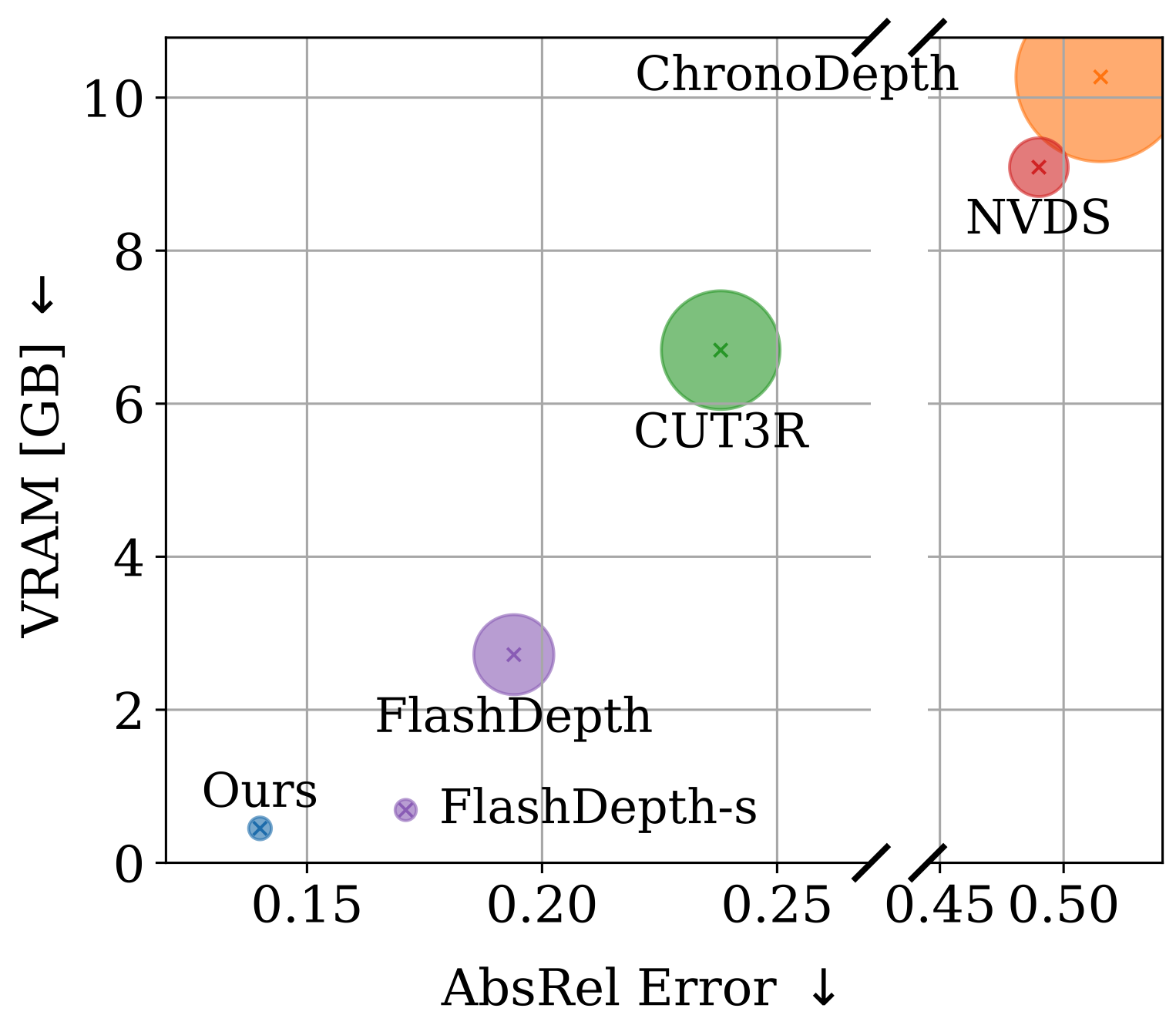 estimation methods in both accuracy and VRAM usage. Low VRAM usage is particularly important for deployment